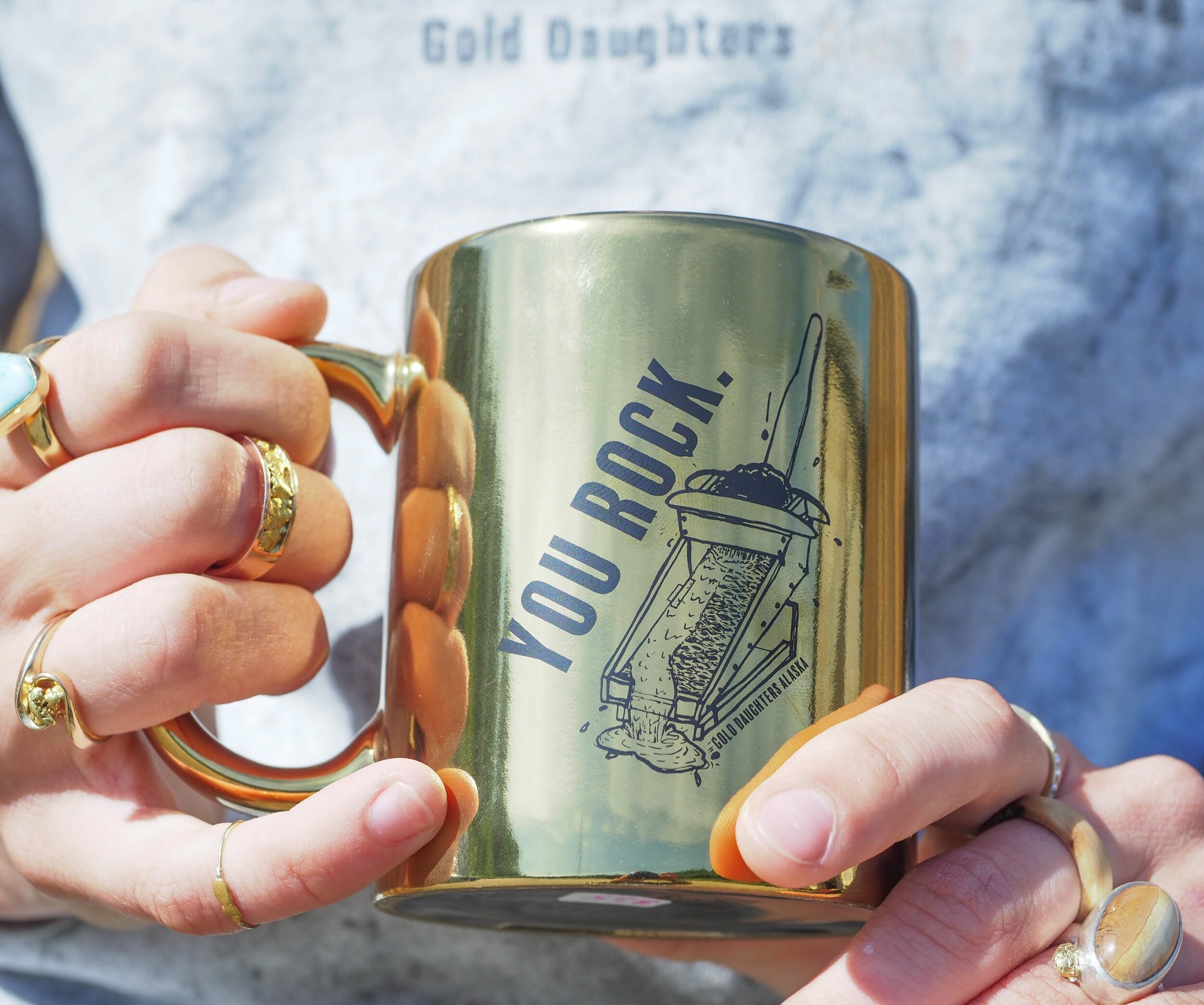 Categories: Select a Category Panning Apparel Jewelry Rocks and Minerals Drinkware Stickers Virtual Gift Shop Panning | Apparel | Jewelry | Rocks and Minerals | Drinkware | Stickers | Sterling Silver Stacker with Alaskan Nugget from $100.00 Alaskan Gold Flake Beaded Ring from $80.00 Alaskan Gold 14K Channel Band $2,300.00 Alaskan Gold Nugget Threaders from $120.00 Stickers from $3.00 The Dude $50.00 Alaskan Gold Daisy Dangle Earrings $160.00 Sold Out Fairbanks Gold Co. Bones Camo Hat $30.00 Fairbanks Gold Co. Hoodie $60.00 Girl Panning 1/4 Zip $60.00 Fairbanks Gold Co. Tee $32.00 Fairbanks Gold Co. Crop Tee $32.00 Fairbanks Gold Co. Toddler Tee $28.00 Gold Daughters Toddler Tee $28.00 Fairbanks Gold Co. Pick and Shovel Camo Hat $30.00 Gold Daughters Camo Hat $30.00 Corduroy Rock Hound Hat $30.00 Alaskan Gold Heart Ring $190.00 Alaskan Gold Heart Earrings $160.00 Locket w/ Raw Alaskan Gold from $60.00 Chain Bracelet from $25.00 Alaskan Gold Nugget Charms from $50.00 Alaskan Gold Nugget Pendants from $320.00 Chains from $25.00 Decorative Skull Carvings from $300.00 Black Agate Book-End Set $80.00 Charms with Raw Alaskan Gold Flakes $75.00 Alaskan Gold Letter Charm $75.00 Alaskan Gold Nugget Earrings from $430.00 Professional Gold Digger Tee-Shirt $32.00 Golden Heart City Earrings $120.00 14k Gold Alaskan Nugget Stacker Ring $240.00 Silver Pan Your 💛 Out Ring $190.00 Silver and Gold Mountains Stacker $260.00 Color Changing Mug $20.00 Kiddos Gold Daughters Cap Sale Price: $25.00 Original Price: $30.00 Sale Gold Digger Coffee Mug Sale Price: $15.00 Original Price: $24.00 Sale Lil' Bucket O' Treasure $40.00 Trough Tailings for a cAUse $40.00 SiliPint Tumbler Sale Price: $16.00 Original Price: $24.00 Sale SiliPint Wine Glass Sale Price: $9.00 Original Price: $15.00 Sale Everyday Cap $30.00